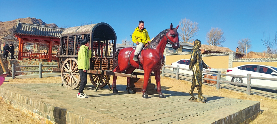 春节期间,许多京津冀蒙等地的游客前往天镇县逯家湾镇薛三墩村国家3A级旅游景区打卡边塞风情古村落。图为2月23日,游客在景区游览。