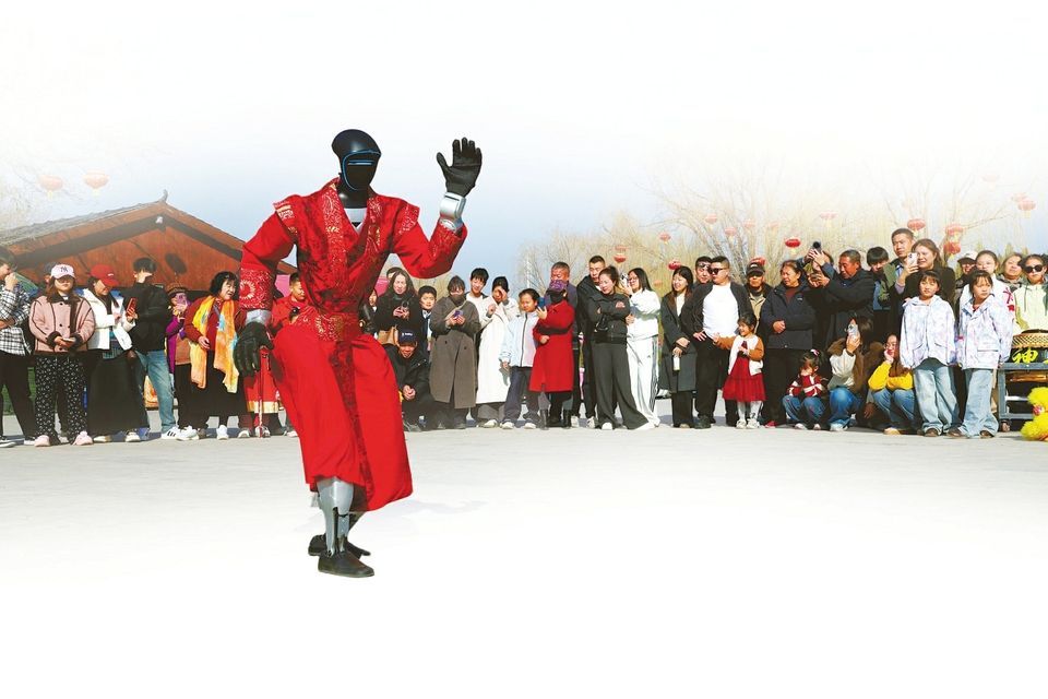 荧屏上的AI热潮,同样涌动在三晋大地的烟火气中。“平遥中国年”刮起最炫“科技风”。古城南大街上,铿锵锣鼓声中,传统舞龙队伍穿梭于灰瓦红灯之间。而在古城另一隅的原棉织厂院内,一场机器人嘉年华正在上演:仿生机器人时而表演武术,时而大跳“醒狮舞”,灵活的机器狗翻滚作揖,与游客热情互动。“社火锣鼓与机器人古城起舞,让今年的年味更有趣了。”来自北京的游客张峰举着手机,镜头追随着一只表演“武术”的机器人。当地机器人项目负责人张艳伟表示:“我们希望用科技为传统节日注入新活力,让古老文化遗产以更年轻、更互动的方式传承。”