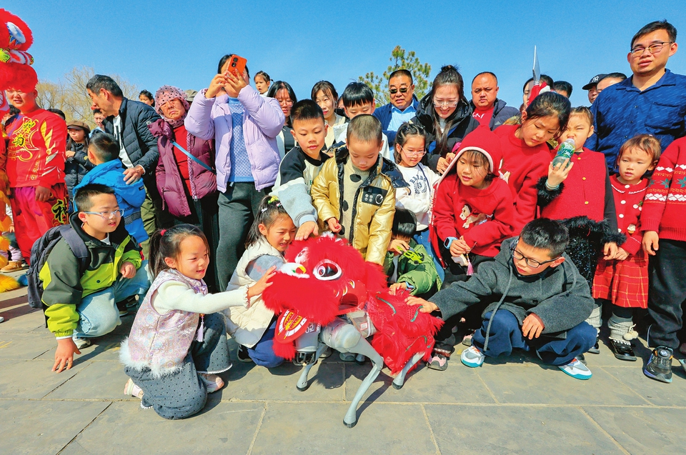 春节期间,永济鹳雀楼景区以“文旅+科技”点亮新春,机器人舞蹈、智能机器狗互动体验精彩上线,为千年名楼注入新潮活力。闫鑫摄
