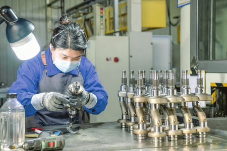 图为2月24日,山西东鑫衡隆机械制造股份有限公司工人正在赶制订单。李虎威摄