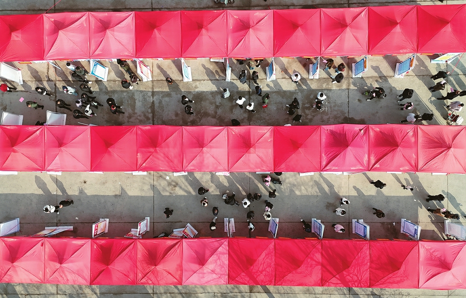 这是2月24日拍摄的河南省焦作市温县“春风行动”专场招聘会现场(无人机照片)。近日,全国各地举行形式多样的招聘活动助力就业。