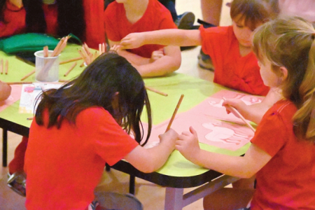 2月22日,当地儿童在澳大利亚墨尔本维多利亚国家美术馆举行的春节主题活动上画马。