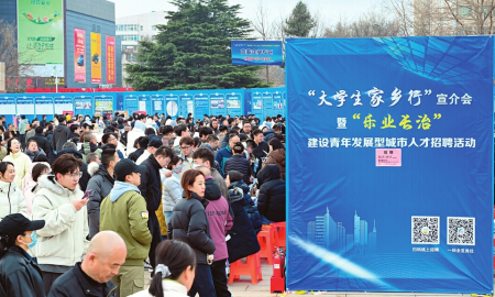 2月26日,长治市举行“大学生家乡行”宣介会暨“乐业长治”建设青年发展型城市人才招聘活动,吸引众多求职者前来应聘。