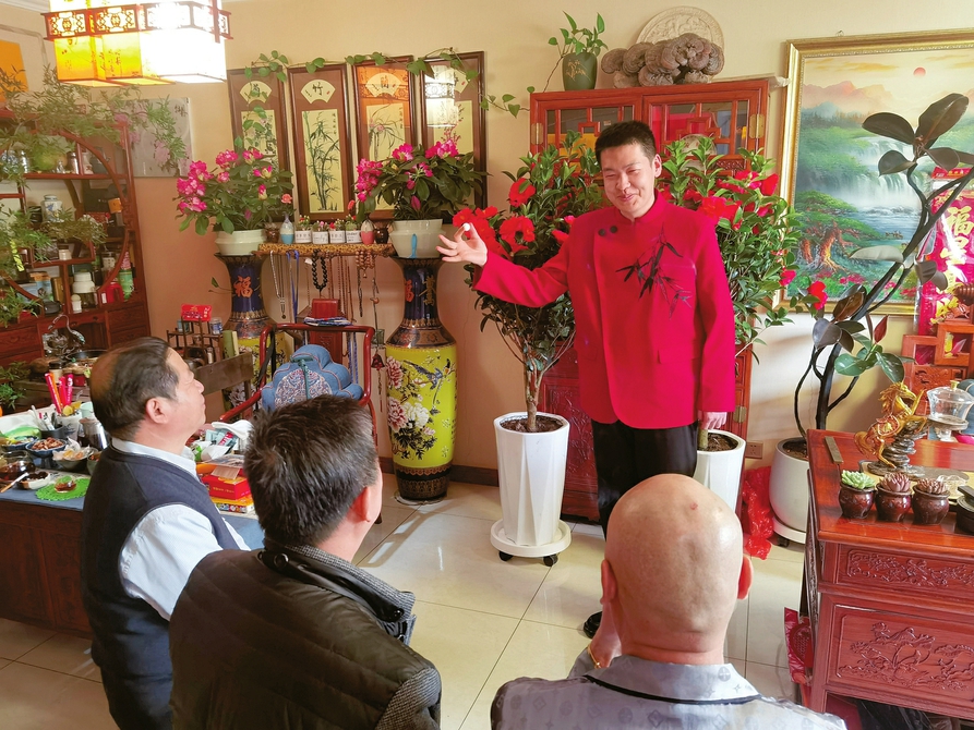 表演结束,郭少谦拱手作揖,献上谢场词:“这就是咱古彩戏法的魅力所在,一招一式、百看不厌。春节将至,祝大家一年365天,天天笑口常开,开门大吉,吉祥如意。”