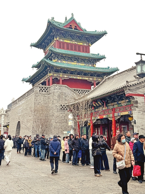 2月28日,太原钟楼街口,古朴的钟楼街标志成为演艺宣传的新窗口。本报记者邓伟强摄