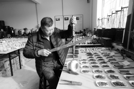 “小时候,一听说锔瓷匠来了,我和同村的小伙伴就会跑去看热闹。一把长长的弓,上面系着一根细绳,匠人将钻头绑在绳上,来回拉动小弓,然后将锔钉嵌进钉眼,仔细锤实敲紧,最后涂上糯米混合石灰熬成的米浆。这样锔补修复后的瓷器,无论装冷水还是热汤,都可做到滴水不漏,真的很是神奇。”老赵告诉记者。而正是由于对“锔瓷”这门手艺的痴迷,后来他从事了锔瓷收藏,这一做就是40余年。在赵士信看来,“锔瓷”收藏使得他与这门宝贵的民间文化贴得更近,惺惺相惜。