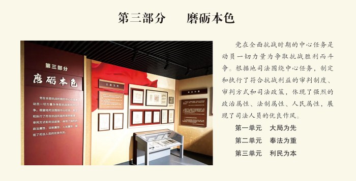 本期《山西审判》专辑精心设置了“选展概览”“文献选辑”“档案选辑”“法制人物”“延伸阅读”“展陈纪事”等板块,图文并茂,内容丰富生动。从中,我们能够看到根据地司法工作者们在战火纷飞的岁月中所进行的艰苦探索,感悟他们的司法智慧,包括对党的事业无限忠诚、对公平正义的不懈追求、对人民群众的深切情怀等等,以及在推动司法制度完善、形成优良司法作风等方面取得的丰硕成果。
