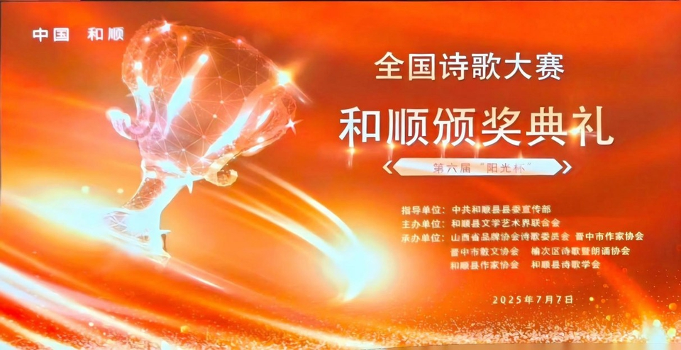 第六届“阳光杯”全国短诗大赛征文活动自2024年11月1日在成都、太原、晋中三地联合启动以来,历经半年多的时光沉淀,从广泛征稿到严格初评,再到权威终评,每一个环节都凝聚着无数人的心血与期待。最终,大赛评选出一等奖、二等奖、三等奖、金星奖、星光奖、成就奖等多个奖项。其中,和顺诗歌学会会长宋海波的《壶口瀑布》、副会长李忠义的《一枚苔藓就是一部传奇》,以及县作家协会副主席武恩利的作品《壶口瀑布》分别荣获一、二、三等奖。