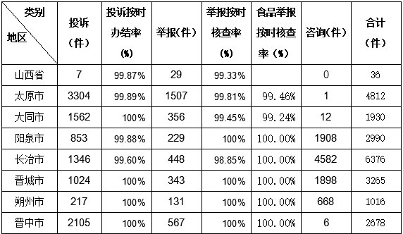 7月份,从全省各市、示范区局工作机构受理消费者投诉举报情况看,投诉量位居前三的市局为太原市、临汾市、晋中市,投诉量分别为3304件、2312件、2105件;举报量位居前三的市局为太原市、临汾市、运城市,举报量分别为1507件、1146件、1066件。详见表1、表2