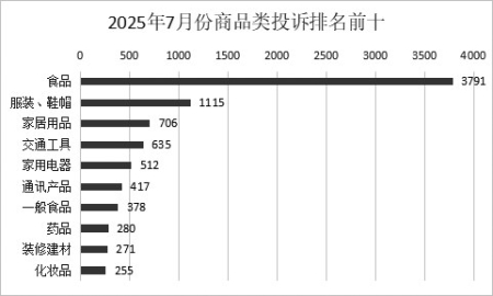 2025年7月份,全省12315机构共接收投诉18559件,其中,商品类投诉11706件,占投诉总量的63.07%;服务类投诉6853件,占投诉总量的36.93%。