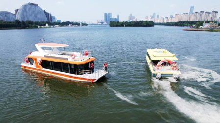 本报讯 8月15日,由辽宁省交通运输厅主办,省交通运输事务服务中心与沈阳市交通运输局协办的2025年辽宁省内陆水上搜救应急演练,在沈阳市浑河城市段北岸举行。此次演练以有效防范化解内陆地区水上交通突发事件为目标,预设了消防、疏散、救助等应急处置场景,依次演练了极端天气失控船舶救助、失火救援、人员安全转移、落水人员救助、事故船舶拖救等七个科目。演练共组织协调指挥6家单位、50余名演练人员、7艘船舶、4台无人机等应急救援力量实施现场应急处置。通过演练,检验了《辽宁省内陆水上搜救应急预案》的实践性,水上搜救险情信息上报、力量调派、协调指挥和现场处置等环节的可操作性,有效整合了各类应急力量的实战应用。