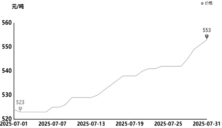 上月总结:7月甲醇市场价格震荡偏强。市场月均价为2077.22元/吨,较上月均价上涨32.42元/吨,涨幅1.59%。本月主产区供应端集中停车,需求淡季背景下甲醇市场底部有支撑。月初西北地区和华北地区部分甲醇装置检修致甲醇供应明显缩减,对业者心态稍有支撑,但下游行业淡季特征凸显,用户对甲醇采购量有限,甲醇市场进入供需端博弈阶段,上行有弱需拖拽,下行有低供支撑,价格涨跌两难,因此7月中上旬甲醇市场价格多维持区间震荡走势,整体波动幅度不大。月下旬在反内卷宏观政策利好提振下,国内能化板块集体上涨,甲醇期货盘面随之走高,提振市场氛围。月底甲醇行业开工率稍有提升,不过由于前期厂家多积极出货,企业库存压力不大,再加上部分烯烃厂询价外采,主力下游需求表现稳健,各地区甲醇市场价格偏强震荡为主,但随着宏观利好支撑减弱,甲醇期货盘面大幅走跌,甲醇市场价格高位窄幅回落。