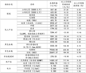 1.重要工业产品市场价格变动