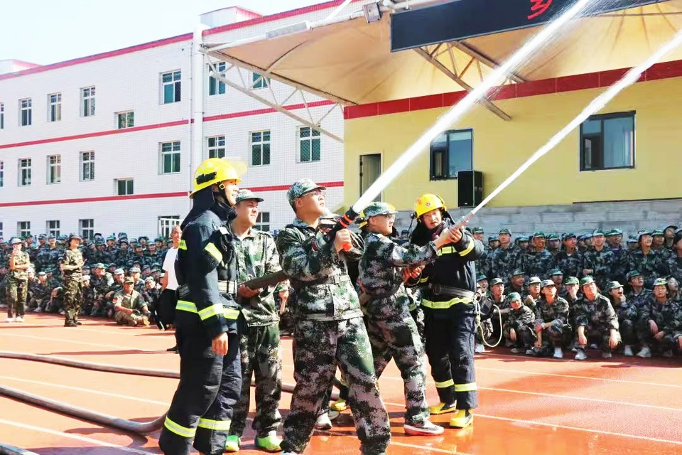 新学期伊始,新生军训作为开启校园生活的重要一课自然少不了。为全面提升新生消防安全素养,连日来,山西各地消防救援队伍精准施策,陆续走进辖区中学校园,将消防宣传深度融入新生军训环节,通过一系列内容丰富、形式多样的实践活动,为“平安开学季”筑牢安全屏障。 在临汾市乡宁县的中学校园里,消防宣传活动同样精彩纷呈。消防宣传人员不仅带来了生动的消防安全课,更将消防车开进操场,让学生们近距离接触消防装备。图为学生体验水枪出水。
