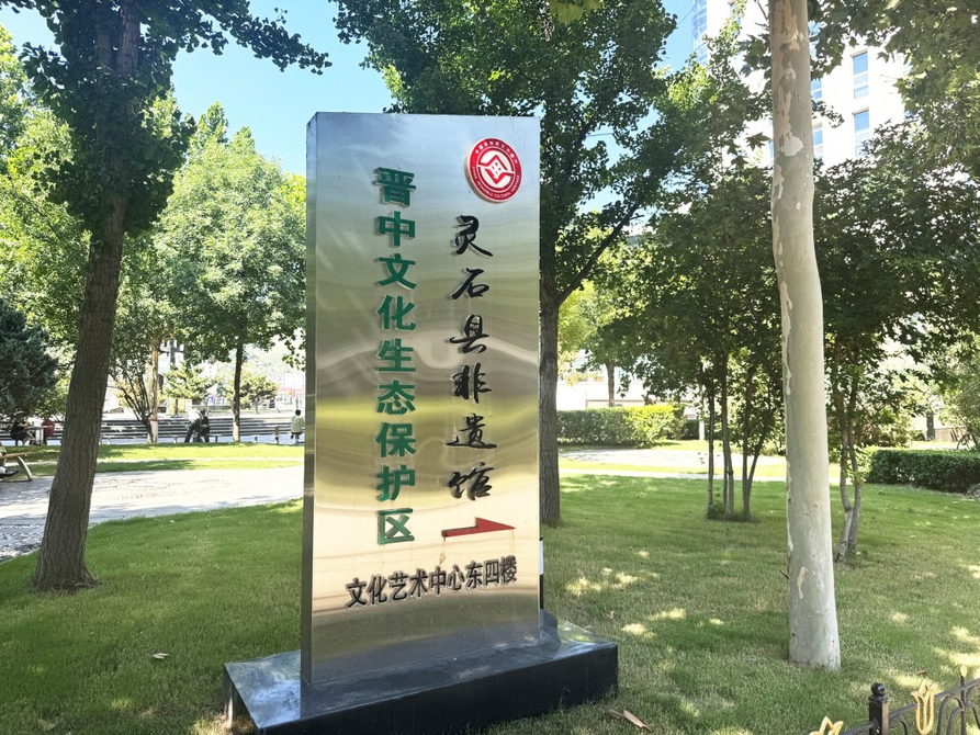 灵石县非遗馆是以非物质文化遗产为主题的集互动展示、宣传教育、创新传承于一体的综合性场馆,面积252平方米,于2016年3月15日建成并正式对外开放,每周二、四上午9:00—11:00为开放时间。其借助文字、图片、实物等形式,从九大板块对灵石县重点的非物质文化遗产代表性项目进行全方位、多角度的展示,并配备先进的声光电设备,设置非物质文化遗产体验区,通过各种活动,担负起传播与弘扬灵石传统文化的历史重任,成为非物质文化遗产代表性传承人展示传承和市民触摸非遗、感知非遗的平台。