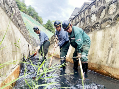 今年以来,华阳集团二矿加大防汛意识,至上而下职责分明,未雨绸缪,走动巡查不留死角,闻汛而动补全短板,科学指挥,明确指令,确保了雨季期间的安全生产。图为8月21日,该矿运输工区职工正在对龙门工业厂区的水沟进行清挖。