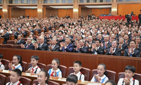 • 9月3日,纪念中国人民抗日战争暨世界反法西斯战争胜利80周年文艺晚会《正义必胜》在北京人民大会堂隆重举行。习近平、李强、赵乐际、王沪宁、蔡奇、丁薛祥、李希、韩正等党和国家领导人,与约6000名中外人士一起观看晚会。新华社记者李响摄