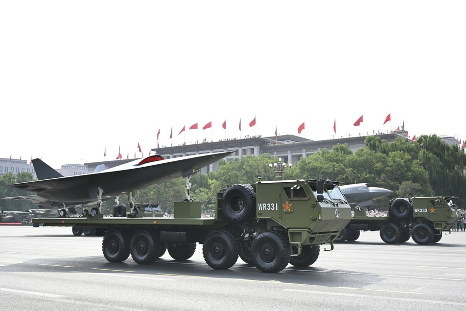 9月3日,纪念中国人民抗日战争暨世界反法西斯战争胜利80周年大会在北京隆重举行。这是空中无人作战方队接受检阅。新华社记者杨冠宇摄