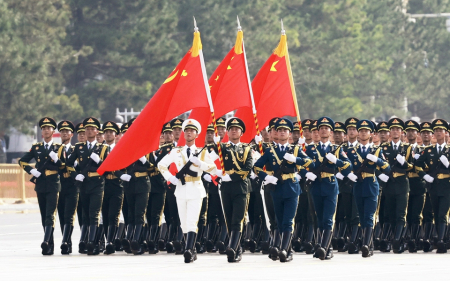 检阅车徐徐前行。受阅官兵追随统帅的目光,饱含着全军将士的无限忠诚;受阅官兵穿透时空的应答,彰显着人民军队的永恒底色。