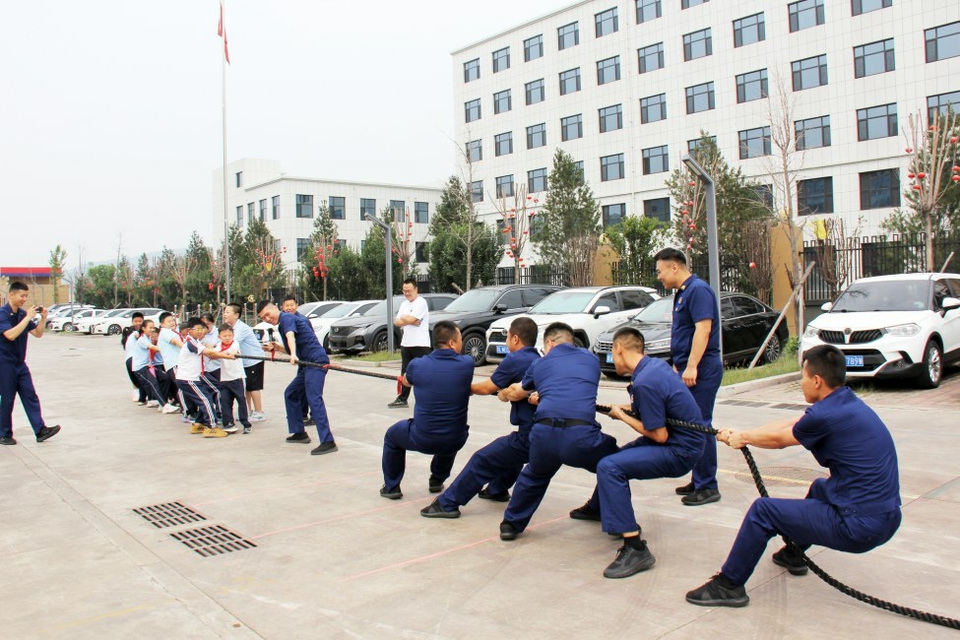 孩子们和消防员比赛拔河