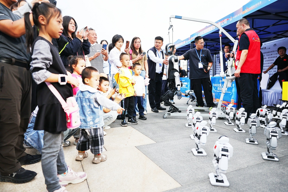 9月20日,在2025年太原马拉松预热活动——“人形机器人欢乐跑”现场,一群科技感十足的人形机器人正与市民互动,他们动作灵活、萌态十足,引来围观群众的阵阵欢笑。此次欢乐跑不仅为太马注入了前沿科技的魅力,更让大众感受到体育与科技融合的无限乐趣。(2025太原马拉松相关报道详见12版)