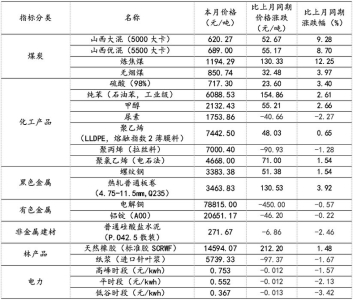 1.重要工业产品市场价格变动(见表1)