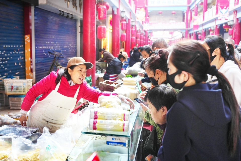 近日,我省遭遇持续降雨天气,但各地农贸市场价稳质优,市民“菜篮子”供应充足。记者了解到,降雨天气对蔬菜运输影响不大。各市场内蔬菜种类丰富、供应充足。另外,土豆、白菜、大葱等冬储菜也将陆续上市。图为10月14日,太原市开化寺早市上,市民选购农副产品。一位蔬菜商户介绍,这两天供货量充足,豆角、茄子等蔬菜销量不错。