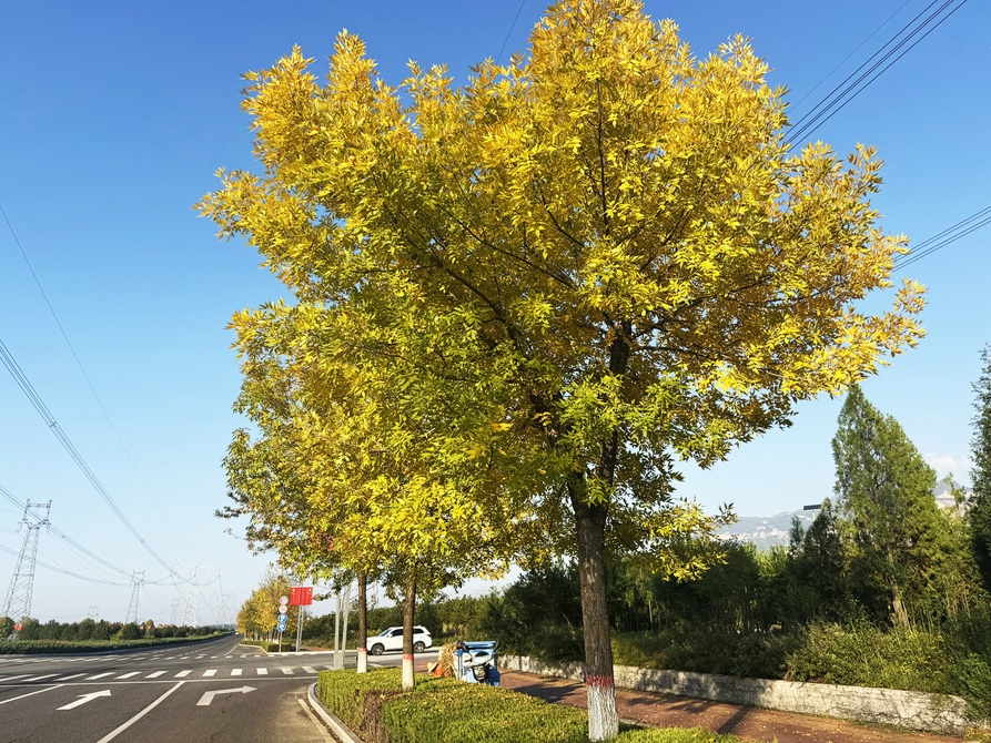 街道旁秋意渐浓的树木