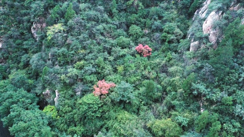 红崖峡谷景区悄然变红的枫叶