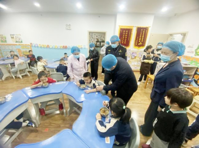 近日,太原市晋源区市场监管局局长李嘉带队,对晋源区第六实验小学校、金色摇篮小学及幼儿园开展食堂食品安全检查。检查组深入食堂各区域,聚焦进货查验、人员健康等关键环节排查。 检查组在原材料储存区核查台账、票据及食材保质期,严禁采购“三无”等问题原料;在加工操作间查流程规范及生熟分开,要求烧熟煮透;在餐具清洗间核验消毒设备运行,规范记录流程。