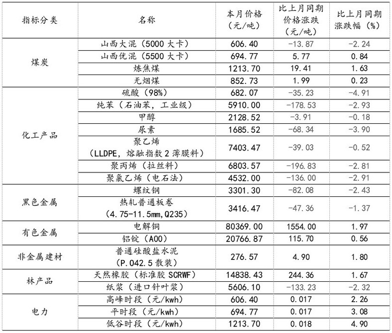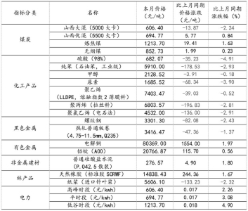 1.重要工业产品市场价格变动