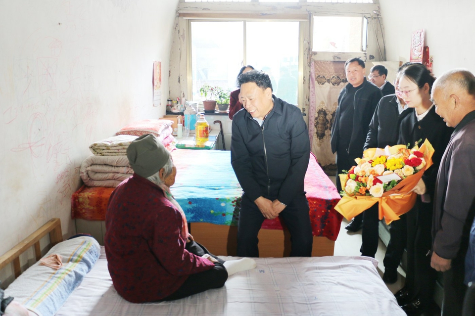 本报讯 10月28日,灵石县委书记韩军走访慰问灵石县百岁老人,代表县委、县政府向老人送去党和政府的关怀与温暖,并致以节日的问候和诚挚的祝福。