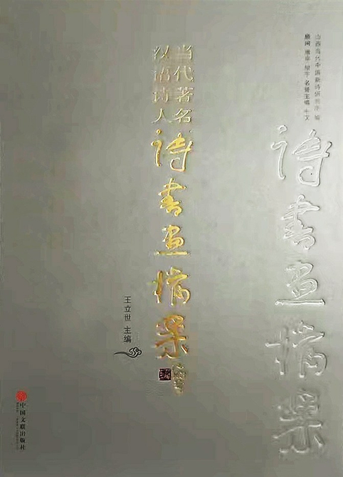 在单位取了书就迫不及待地打开包装,终于看到这本装帧精致的诗书画档案。我选了一条安静的小路回家,不时地打开书看几眼,就像饥饿很久的人终于得到了面包,走走停停,读读看看,既看不够,也看不倦。浅灰色的烫金的封面,典雅又大气,端庄又高贵,象征了中国文人那高洁的灵魂。“当代著名汉语”几个字是印刷体,“诗书画档案”是大书法家沈鹏亲自题写,洒脱笔法,正是文人那潇洒不羁的写照。书名的一角题着“王立世主编”,墨很轻,字很小,不仔细看几乎看不清,这很符合诗人一贯的低调,低到尘埃里,却开出美丽的花。