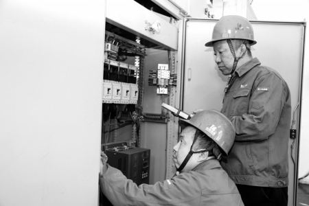 为了确保企业安全生产、职工群众用电安全,不断提升可靠供电水平,近日,山西焦煤汾西矿业水峪煤业从保供暖、保设备、保安全出发,全方位开展电路设备巡察行动,扛牢电力保供责任,确保冬季电力稳定运行。图为水峪煤业供电队检修人员正在对配电设备进行检查。