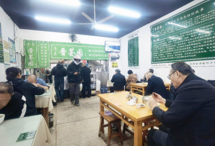 正午时分,体育场内某铜火锅店又座无虚席。金灿灿的铜火锅里,手切羊肉在清汤中翻滚,食客们夹起肉片在麻酱里一蘸,配上刚出炉的揪片汤,暖意从舌尖蔓延到四肢。“山西人的冬天离不开铜火锅,三五好友围炉而坐,喝口高粱酒,聊聊天,这才叫过冬。”常客李女士边说边往锅里添羊肉,热气模糊了玻璃窗,也映红了笑脸。