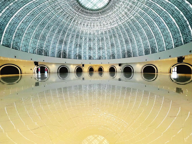 这座总建筑面积达39600平方米的建筑,集艺术、文化、旅游、展览、展示等功能于一体,内涵丰富。建筑以时尚简洁的当代设计语言,将怀仁陶瓷特色融入细节:入口门廊仿高岭土的温润色泽与质感,展厅入口则采用陶瓷窑口造型,粗糙陶坯般的材质更衬陶瓷本真。步入其中,光影交织的穹顶下,窑口元素随处可见,玻璃透入的暖光让每一处角落都成为绝佳拍摄点。