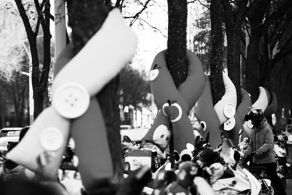 12月8日,太原市并州东街上,绿化树木穿上了厚实的“围脖”,给寒冷的冬日带来了一份温馨与喜庆,成为街头一道亮丽的风景。