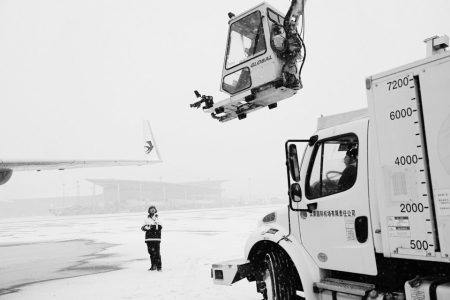 受冷暖空气共同影响,近日,太原先后出现大风、降温、降雪天气。东航山西分公司以雪为令、迅速响应,联动属地各单位,以硬核担当筑牢航班运行与旅客出行的安全防线。图为机坪特种车驾驶员,反复排查车辆工况,全力保障飞行人员及旅客通行安全。飞机维修人员配合专业加热设备精准处置,精准落实飞机出港预检、除防冰、检修维护及航前保障全流程工作。