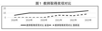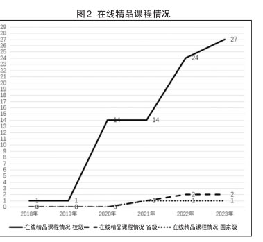 学分制改革后,合理配置资源,学生自主选课等,提升了教学竞争力,教师不断提升自己教学的综合素质,积极组织参加各类竞赛活动,并取得了一定的成绩,教师获得省级及国家级奖项逐年增多,教师取得奖项对比(见图1)。精品在线课程建设数量也不断增加,丰富了教学资源,提升了学生学习的兴趣度(见图2)。