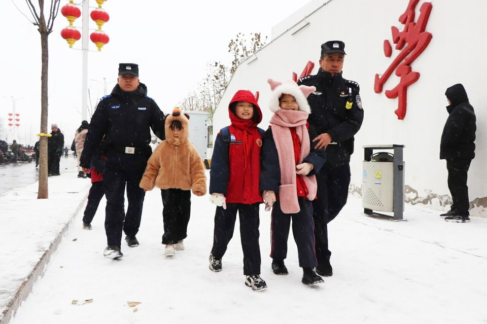 冰冷的雪天里,一幕幕暖心场景在不断上演。执勤民警化身“推车侠”,帮助因路滑受困的车辆脱离险境;在校园门口及人行道前,他们细心护送学生、搀扶老人安全通过;针对滞留的货运车辆,民警们送上热水、方便食品,一句句叮嘱注意安全保暖;他们还积极联合环卫、市政等部门,清扫主干道、交叉路口积雪,铺设防滑料……这些点滴行动,让严冬的出行路充满了融融暖意。 (乔卿)