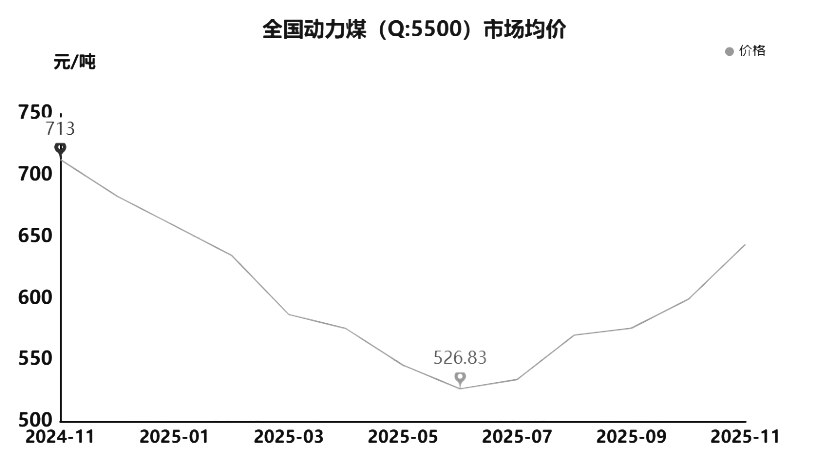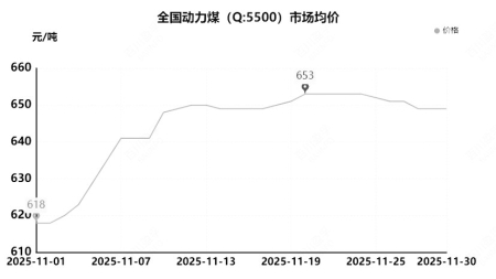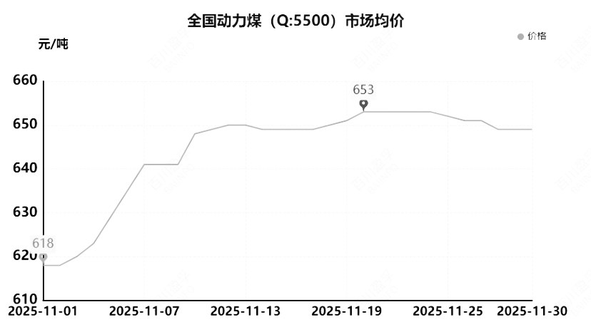 上月总结:11月动力煤价格整体走势以上行为主。市场月均价为644.2元/吨,较上月均价上涨44.55元/吨,涨幅7.43%。本月产地大多数煤矿维持正常生产销售,多以确保长协煤发运为主,安全检查较为严格,部分煤矿生产受限,动力煤产量暂无大幅提升。本月气温转冷,供暖需求增加,下游电厂日耗高位波动,冬储预期较强,下游化工、冶金等行业采购积极性尚可,贸易商拉运积极;并且大集团外购价格以及港口价格上涨,市场看涨情绪浓厚,动力煤市场价格持续上行。但随着价格上涨,下游对高价接受度不高,采购节奏放缓,拉运车辆减少,月内动力煤价格有回落现象,但在冬储预期支撑下,下降幅度有限,整体维持高位。