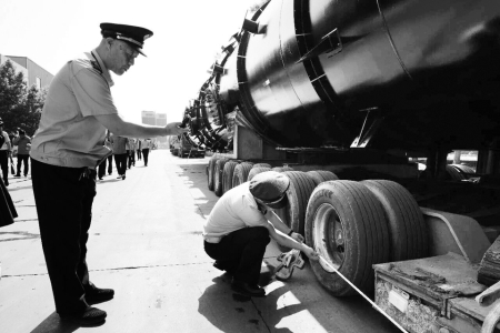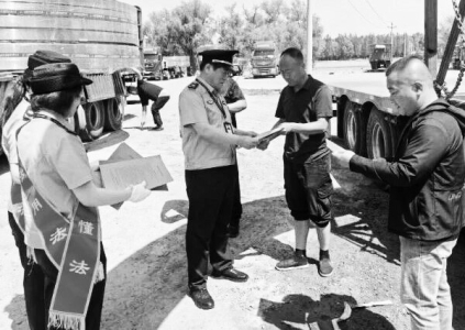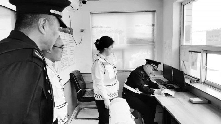 大同支队执法人员深夜对超限运输车辆进行执法检查