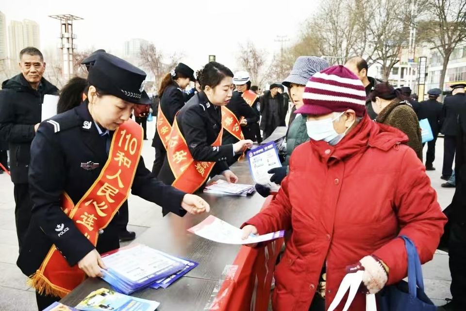 为迎接第六个中国人民警察节,1月9日,临县公安局在秧歌广场隆重开展以“四十载守护平安110勇毅前行”为主题的宣传活动,用贴近群众的宣传形式传递安全理念,筑牢平安临县建设根基。活动现场氛围热烈,民警、辅警通过发放宣传资料、设置咨询展台、开展互动问答等多种形式,向过往群众全方位普及110相关知识。