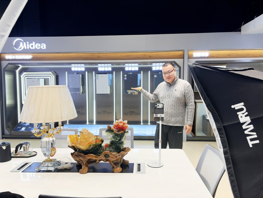 • 九宫华利的员工正在直播推销灯具。