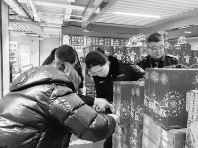在“年堆”前,执法人员仔细询问了年货备货的相关情况,并认真查看包装盒上生产日期、保质期、储存条件等内容。同时,抽取几款礼盒让商家提供进货凭证和供应商资质等。
