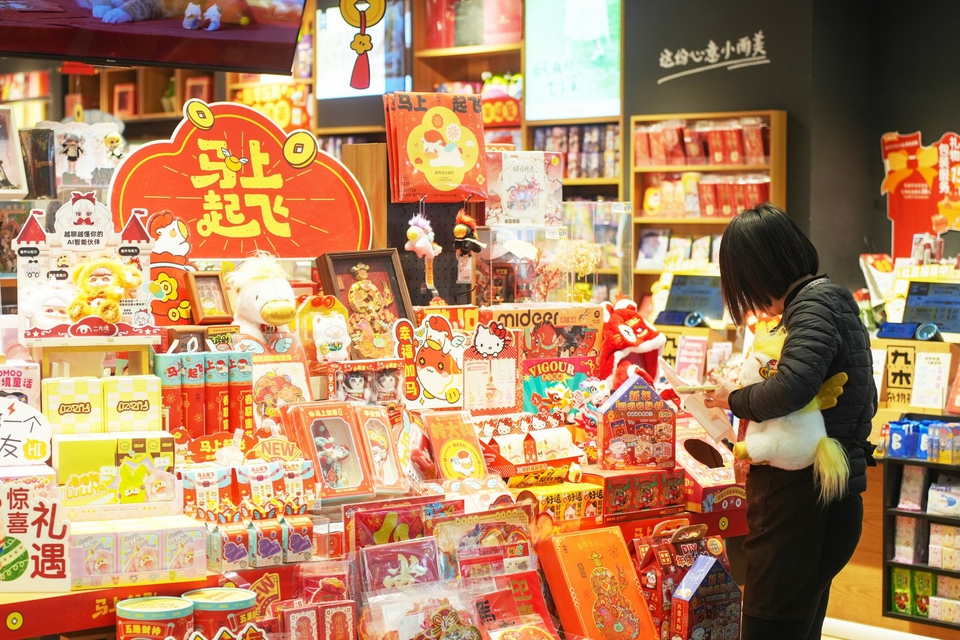 走进太原亲贤街、钟楼商圈等核心地带,“马元素”早已抢占货架C位。服装专柜里,中式盘扣搭配运动夹克的“黄马褂”、刺绣小马的中国红帽衫吸睛无数;潮玩文创店内,“马上顺荔”布艺挂件、“马踏祥云”潮玩积木、憨态可掬的“马上有钱”钥匙扣创意十足,成为年轻人的心头好。家长们带着孩子挑选软乎乎的马形玩偶,借着“马到成功”的吉祥语传递祝福。