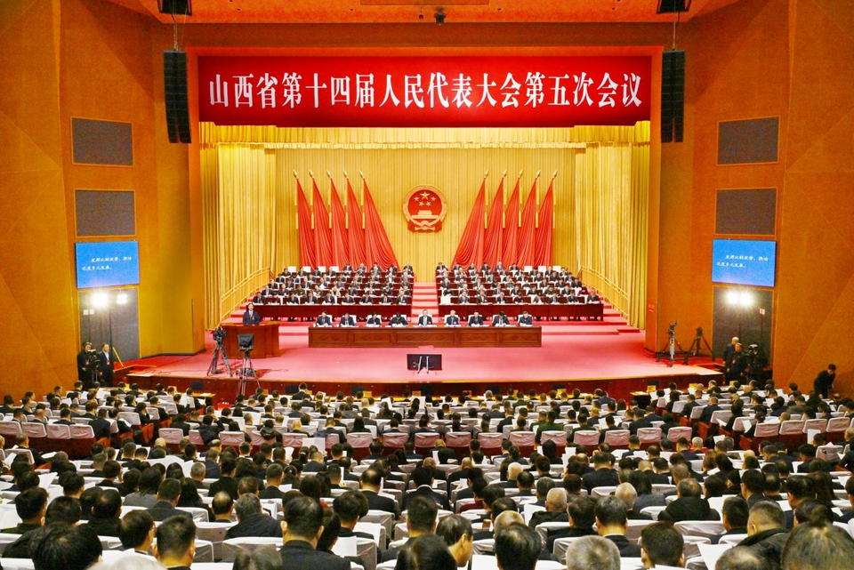 上午9时,唐登杰宣布:山西省第十四届人民代表大会第五次会议开幕。会场全体起立,奏唱国歌。
