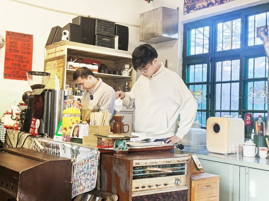 位于太原市迎泽区的一家怀旧复古风格“没傻子”咖啡馆内吸引了很多年轻人。“这里比较出片,而且也是我喜欢的风格。”一位正兼职做服装模特在店内拍照的大学生说。