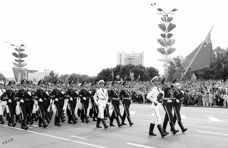据新华社电 白俄罗斯3日上午在首都明斯克举行解放80周年庆祝阅兵活动。应白俄罗斯国防部邀请,中国人民解放军仪仗司礼大队抽组仪仗分队参加阅兵活动。