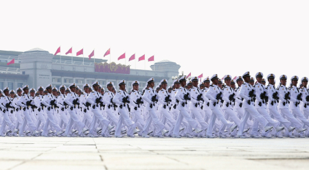 踏浪蹈海,走向深蓝。3日上午,海军方队经过天安门广场,接受祖国和人民检阅。